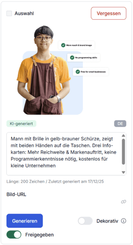 easyAIt markiert Bilder mit KI-generierten Alternativtexten automatisch als genehmigt