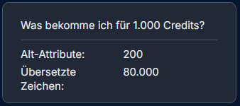 1.000 Credits entsprechen 200 generierten Alt-Attributen.