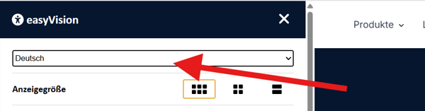 Die Übersetzung von Website-Inhalten erfolgt über das easyVision Widget.
