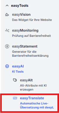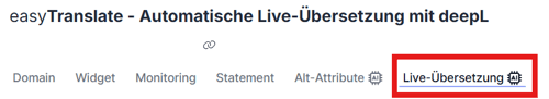 Sie können easyTranslate über das linke Seitenmenü oder über die Tabs aufrufen: