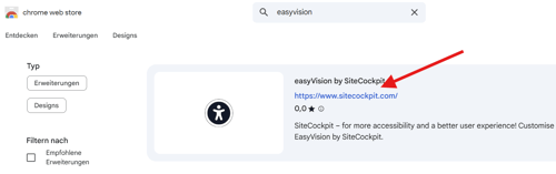 Klicken Sie auf „easyVision by SiteCockpit", um die Detailseite des Add-ons zu öffnen.
