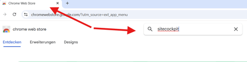 Geben Sie in die Suchleiste den Begriff „SiteCockpit“ ein und bestätigen Sie die Eingabe mit der Eingabetaste.