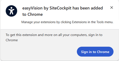 After installation, another small window will appear confirming that easyVision has been added to Chrome.