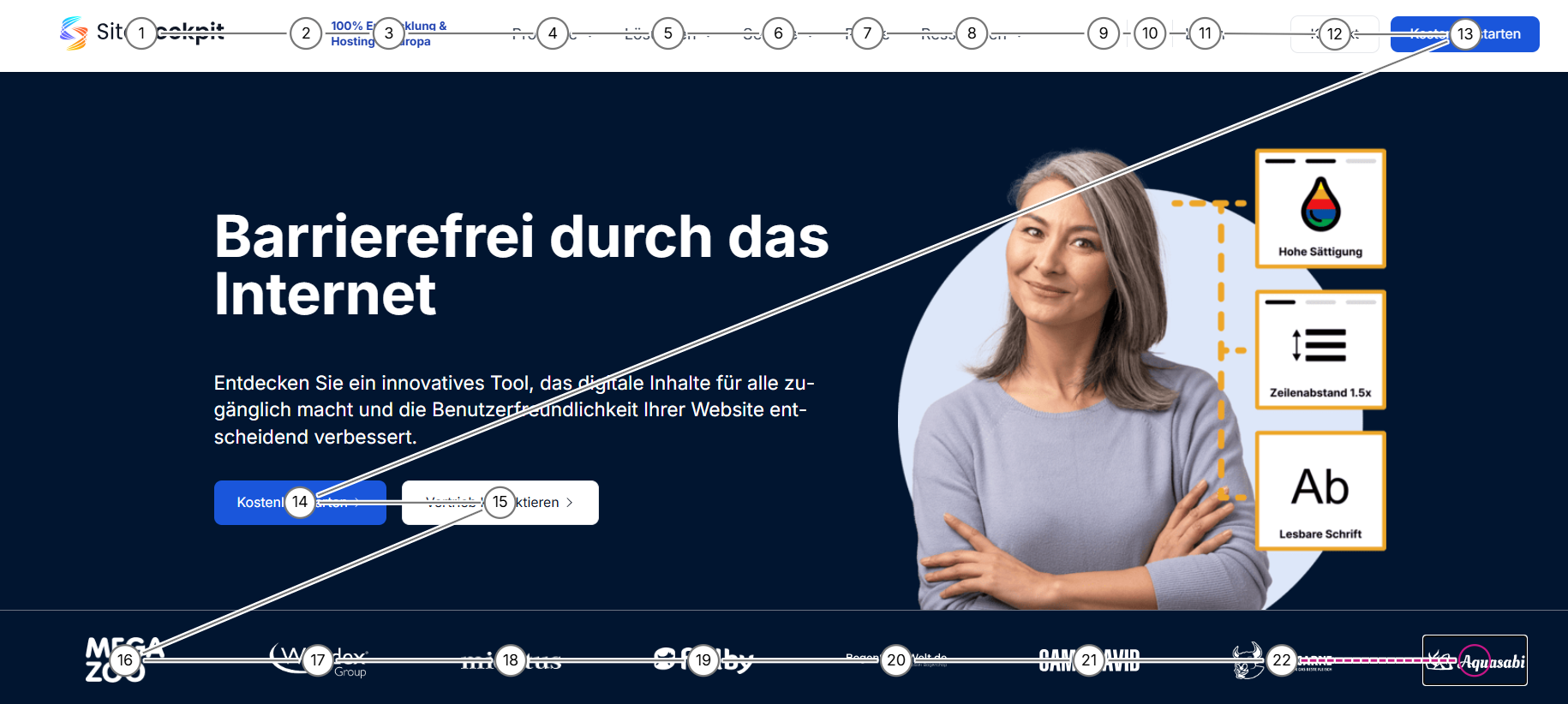 If the tab order is illogical, users lose their orientation. The focus appears to jump randomly across the page or get stuck in hidden areas. This makes operation considerably more difficult and can make important content or functions inaccessible. The error violates WCAG 2.4.3 (A) Focus Order.