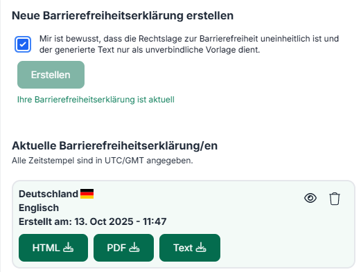 easyStatement enables you to create a legally sound accessibility statement for your website or digital platform in just a few steps. Please pay attention to the contextual guidance and legal notes provided throughout the process.