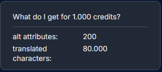 1,000 credits correspond to 80,000 translated characters.